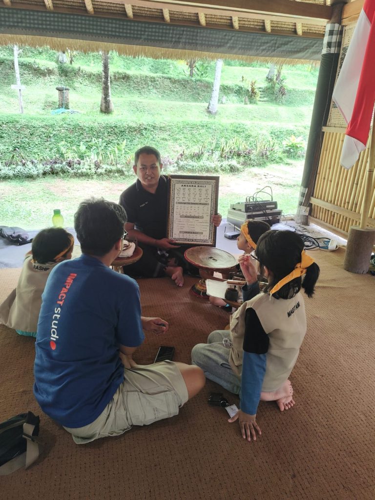 Tak lama kemudian, di sebuah pondok, muncul dua sosok yang kemudian kami kenal bernama Bli Angga dan Mbok Rara, beserta tim museum. Sambutan mereka jauh dari kesan formal. Tidak kaku, ramah sekali. Rasanya seperti disambut teman yang sudah lama saling kenal. Walau museum sedang direnovasi, Bli Angga tetap mempersilakan kami masuk untuk belajar bersama.