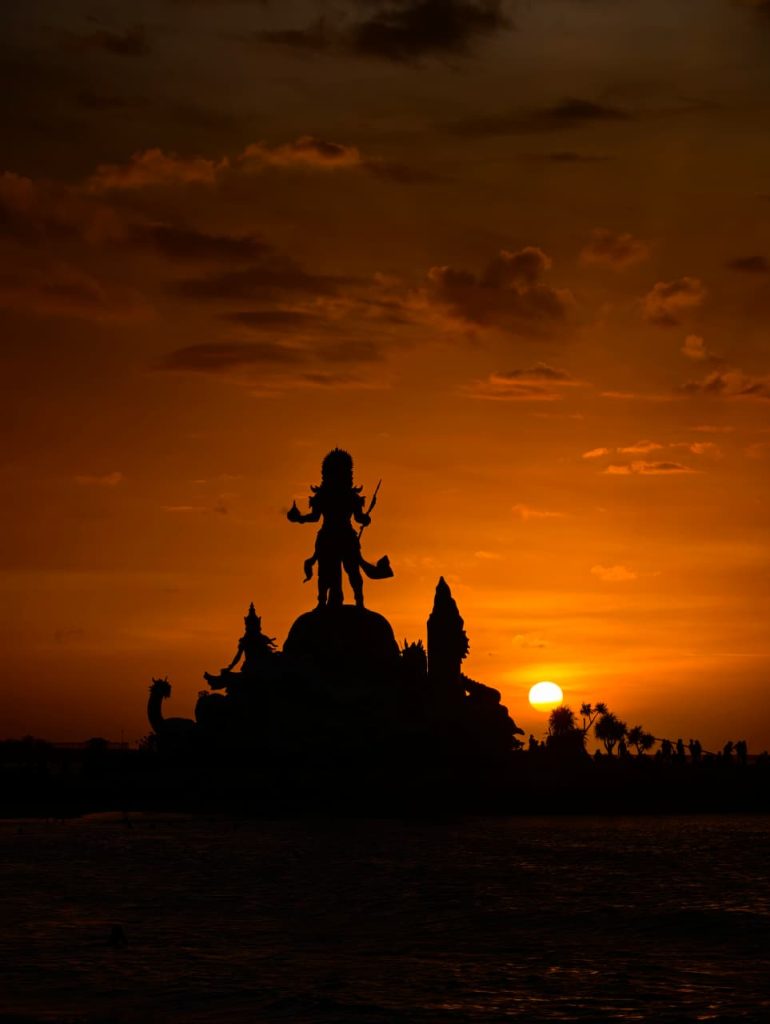 Pas sore hari, patung ini kelihatan sakral banget. Cahaya matahari jatuh di belakangnya, bikin siluet yang dramatis. Buat kamu yang suka foto-foto, spot ini wajib masuk galeri.