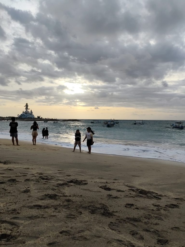 Yang bikin beda, ada siluet pesawat dan patung Triratna Amreta Bhuwana nan megah. Saat sunset, kamu bisa lihat pesawat landing atau take off dengan latar langit jingga. Kombinasi alam dan teknologi yang aneh tapi indah. Jujur, ini salah satu sunset paling unik yang pernah aku lihat di Bali.