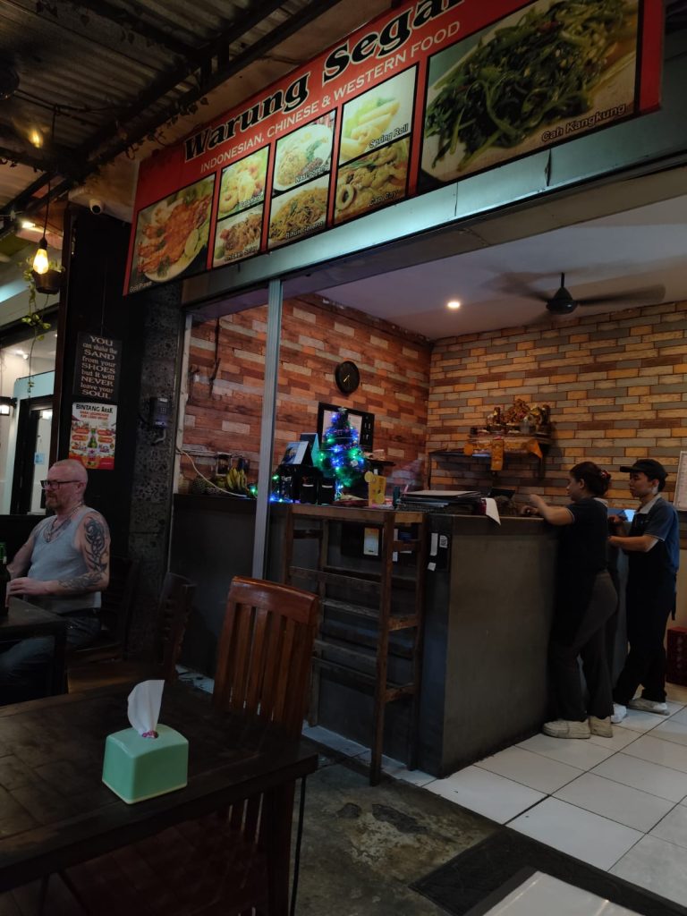 Kalau mau yang rasanya Indonesia banget dan harganya masuk akal, aku saranin Warung Segara. Lokasinya nggak jauh dari pantai, searah Hotel Holiday Inn. Makan nasi campur tapi harganya rupiah banget, bukan dolar-oriented. Simple, tapi nikmat.